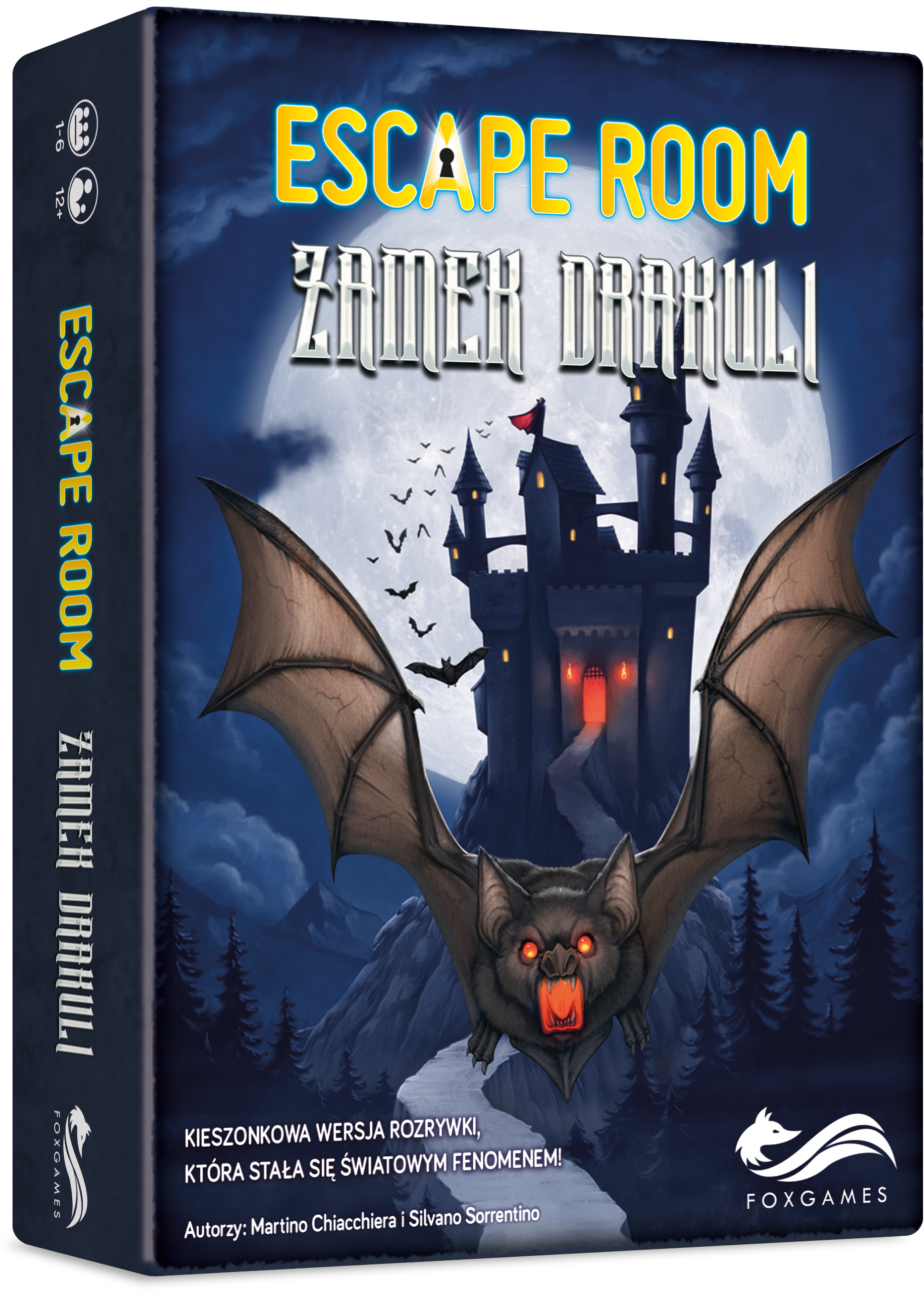 Zamek Draculi to 9 tytuł z serii gier kooperacyjnych inspirowanych prawdziwymi escape roomami. Gra karciana jest przeznaczona dla grupy przyjaciół, bądź samotnego śmiałka. Późnym wieczorem, kilka dni przed Halloween, wchodzisz na strych w poszukiwaniu przebrania. Zamiast niego wśród zakurzonych pudeł znajdujesz zapomnianą księgę. Kiedy po nią sięgasz, słyszysz dzwonek do drzwi. Cóż za dziwny zbieg okoliczności! Listonosz podaje ci pożółkły list od hrabiego Vlada D. Okazuje się, że księga to jego własność i żąda, byś zwrócił ją osobiście. Czy jesteś gotowy na przygodę w Transylwanii? Zawartość: 64 duże karty z zagadkami 1 stara księga Liczba graczy 1-6 Wiek 12+