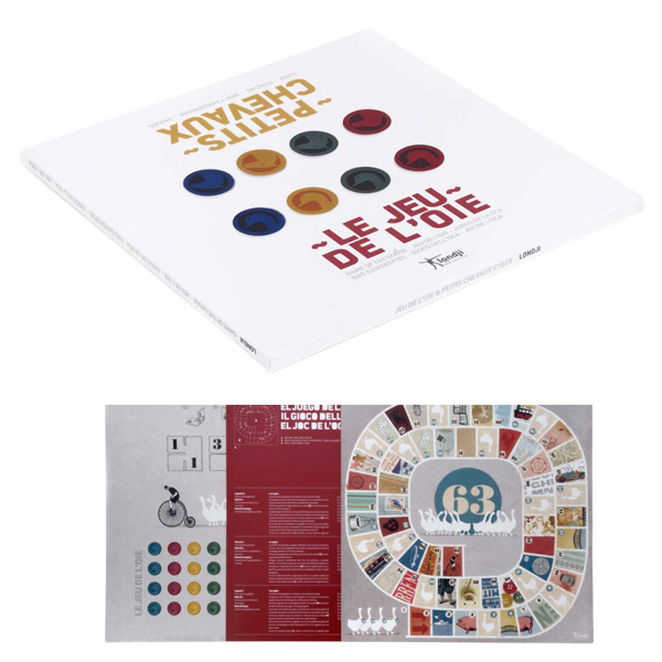 Dwie gry planszowe w jednym opakowaniu. Po jednej stronie planszy jest gra w gąski, po odwróceniu klasyczna gra Ludo.
