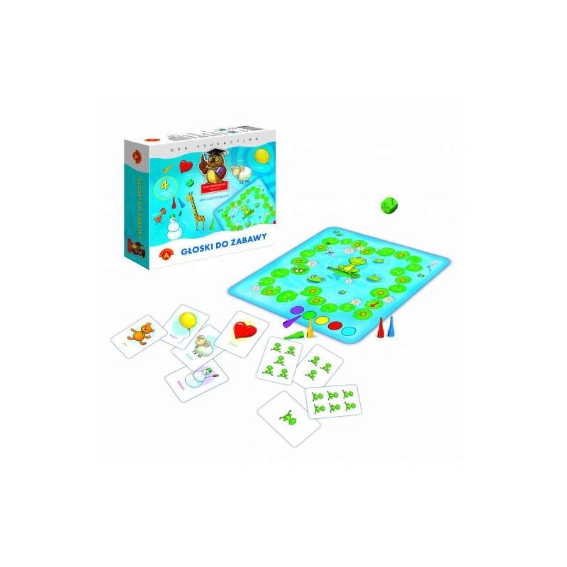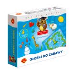 Głoski do zabawy""- gra kształcąca słuch fonemowy(umiejętność analizy i syntezy głoskowej wyrazów) oraz koordynację wzrokowo-słuchowo-ruchową umiejętności bardzo ważne w nauce czytania i pisania. Zestaw zawiera planszę, pinki, karty oraz kostkę do gry i służyć może jako pomoc dla logopedów, pedagogów terapeutów oraz rodziców.Gra dla 2-5 graczy w wieku od 5 lat.