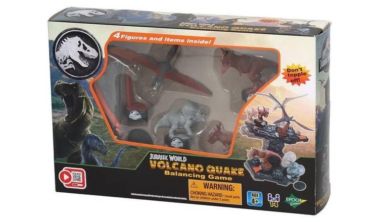 Gra w balansowanie ze sceną z motywem Jurassic World i kawałkami dinozaurów! Jurassic World Volcano Quake to prosta gra polegająca na balansowaniu. Rzuć medal i przesuń figurkę lub kawałek kamienia na scenę. Uważaj, aby nie zrzucić elementów ze sceny! W zestawie 4 figurki dinozaurów Jurassic World.