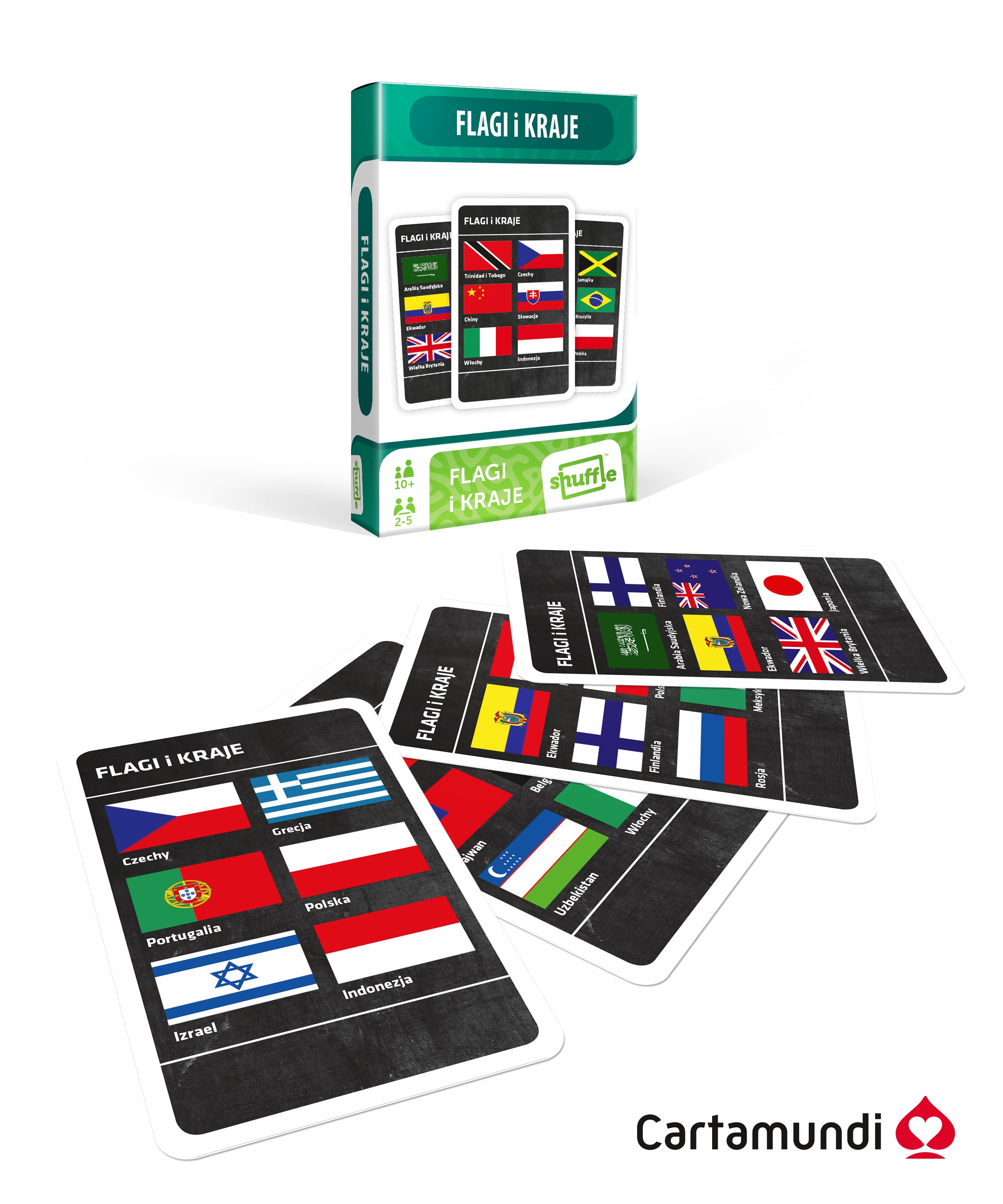 Na świecie jest aż kilkaset państw. Bardzo trudno zapamiętać, jak wygląda flaga każdego z nich. Tym bardziej że układ kolorów, pasów, gwiazd czy innych powtarzalnych elementów często są do siebie bardzo zbliżone. Jeśli jednak masz ambicje nauczyć się rozpoznawać po fladze dowolne państwo globu, może Ci w tym pomóc gra karciana ""Kraje i flagi"" marki Cartamundi.