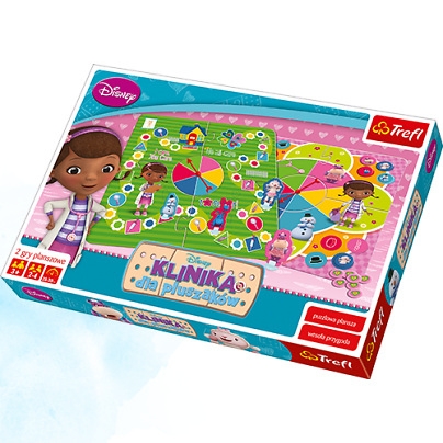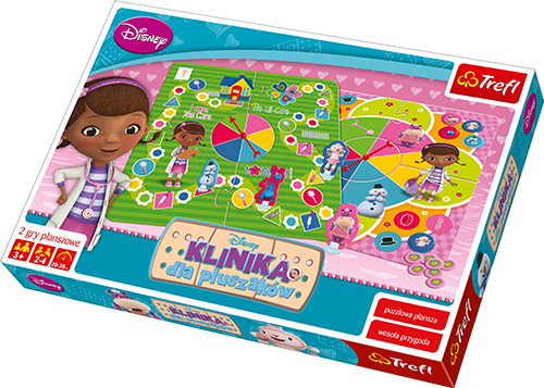 Klinika dla pluszakówW Klinice dla pluszaków Dosia udziela pomocy lekarskiej chorym zabawkom. Pomagają jej ulubione maskotki: Besia, Stefan, Hela i Mrozek. Przyjaciele uwielbiają bawić się razem. Ty też przyłącz się do zabawy i odwiedź klinikę dla pluszaków.Dwie wersje zabawy: ""Na ratunek"" i ""Karuzela"".""Na ratunek"" - wykorzystując koło do kręcenia gracze poruszają się na pierwsze możliwe pole we wskazanym kolorze, aby jak najszybciej dojść do mety. Po drodze czekają na nich pola specjalne które mogą zarówno ułatwić jak i utrudnić dotarcie do mety.""Karuzela"" - wykorzystując swoją pamięć, gracze starają się odnaleźć wszystkich bohaterów bajki. Po zakręceniu kołem gracz losuje dwa żetony z pośród tych ułożonych obok planszy. Jeżeli wylosował parę wskazaną na kole, może dołożyć jeden z tych żetonów do swojej puli przyjaciół, a drugi odłożyć na miejsce. Wygrywa gracz który jako pierwszy uzbiera całą czwórkę przyjaciół.Zawartość pudełka: puzzlowa plansza strzałka losująca 4 pionki 4 podstawki pod pionki 24 żetony instrukcja gry