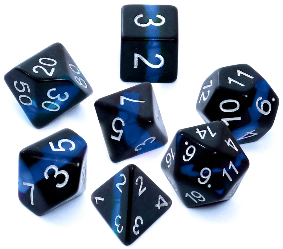 Zawartość:7 kostek: k4, k6, k8, k10, k10 (setka), k12, k20