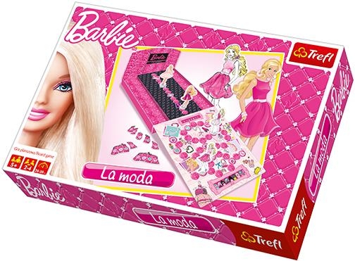 Barbie ma przed sobą wielkie wyzwanie - udział w prawdziwym pokazie mody! Zanim jednak wyjdzie na wybieg, musi w garderobie skompletować swój strój oraz wstąpić do fryzjera. Zarówno w garderobie, jak i na wybiegu czekają na Was liczne niespodzianki i przeszkody. Zwycięża ta z Was, która jako pierwsza przejdzie do końca wybiegu dla modelek. A więc LA MODA!Każda z graczek wciela się w rolę jednej z lalek Barbii biorącej udział w pokazie mody. Na początku gry będą poruszały się po polach za sceną, gromadząc wszystkie najważniejsze elementy garderoby. Gdy już przebiorą się w skompletowany strój, będą mogły wyjść i zaprezentować się na wybiegu. Dodatkowo, wnętrze pudełka zostało specjalnie zaprojektowane, aby przedstawiało profesjonalny wybieg dla modelek.