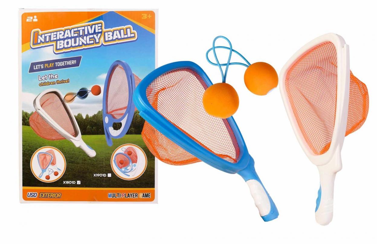 W zestawie: 2 rakietki z siatką wym. 30 x 19 cm, 2 piłki średnica: 4,5 cm, funkcje: gra dla dwóch graczy polegająca na łapaniu i odbijaniu piłki za pomocą siatkowych rakietek, wym. opakowania: 21,5 x 30 x 5 cm, 3+