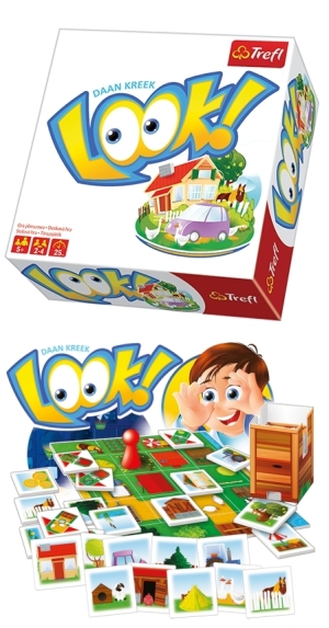 Look!Wyjątkowa gra, która rozwija wyobraźnię przestrzenną!Czy uda się Wam wyobrazić sobie, jaki widok rozpościera się z poszczególnych pól na planszy? Gra posiada dwa warianty rozgrywki. W pierwszym, liczy się szybkość. Gracz, który odgadnie miejsce na planszy, z którego widać widok przedstawiony na kafelku, chwyta pionek i ustawia go na planszy. W wariancie drugim, gracze poruszają się po planszy i odgadują widoki, które można dostrzec z miejsca, w którym znajduje się pionek. W obu wariantach gry zwycięzcą zostaje posiadacz największej liczby kafelków.Zawartość pudełka: plansza 48 kafelków z widokami skrzynka na kafelki 2 kafelki-zakrywki pionek kostka instrukcja