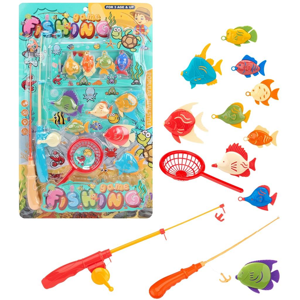 Kolorowa wędka do łowienia rybek. Końcówka wędki i pyszczek rybki są magnetyczne. Zabawka do zabawy zarówno w wodzie jak i na podłodze.