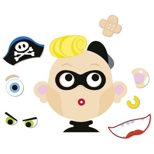 Wąsy? Duże oczy? A może czapka pirata? Tylko od wyobraźni dziecka zależy jaka twarz powstanie Całość wyposażono w magnesy, które mocują poszczególne elementy do bazowej buzi. Poprzez zabawę Twoje dziecko rozwinie swoją kreatywność oraz wyobraźnię. Wiele elementów gwarantuje naprawdę dużo godzin ciekawej zabawy.