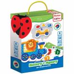 Układaj magnetyczne puzzle na specjalnej tablicy lub na innej powierzchni. Zabierz dziecko do magicznej krainy figur geometrycznych i kształtów. W komplecie gry znajdują się 4 lokomotywy z ilustracją czterech podstawowych figur geometrycznych, a każda lokomotywa ma 3 wagoniki. Zadaniem dziecka będzie włożenie do wagoników przedmiotów o odpowiednim kolorze i kształcie. Na kartach znajdziesz różnorodne zadania, wykonaj je i przypnij odpowiednie magnesy. W instrukcji znajdziesz opisane dodatkowe warianty gry, ale zabawę można urozmaicić poprzez wymyślanie własnych zadań, zwiększając kreatywność dziecka.