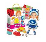 Zestaw: lalka, 27 magnesowych elementów ubioru, książeczka- instrukcja."