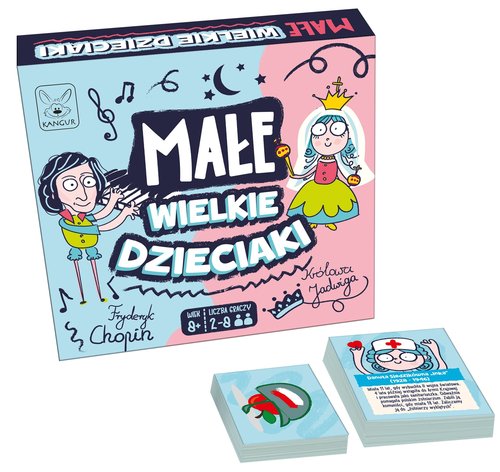 Przed Wami fascynująca gra o niezwykłych dzieciakach, które dokonały wielkich rzeczy. Każdy był kiedyś mały ( lub nadal jest!), ale czy wiecie, jak wiele odkryć, zwycięstw i dzieł sztuki zawdzięczamy właśnie dzieciom? Poznajcie ciekawostki o znanych postaciach i przekonajmy się, że mali geniusze są wśród nas. Puśćcie wodzę fantazji i zgadujecie. Gra edukuje, rozwija wyobraźnię, inspiruje!