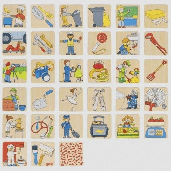 W grze może brać udział od 2 do 4 graczy. Gra zaczyna się od rozłożenia klocków strukturą do dołu, a następnie wymieszania ich na stole. Gracz odwraca pierwszy losowy klocek, a następnie drugi. Tym razem jednak gra nie będzie taka prosta. Nie wystarczy znaleźć 2 takie samie klocki. Zadaniem gracza będzie dopasowanie pracownika zawodu z jego narzędziami pracy. Jeżeli klocki nie pasują do siebie, bądź trafimy na 2 zawody/narzędzia pracy, należy odłożyć je na tych samych miejscach, aby nie widać było obrazka. Następnie swoją turę rozpoczyna kolejny gracz, który ma takie same zadanie. Wygrywa ten gracz, który uzbiera najwięcej par.
