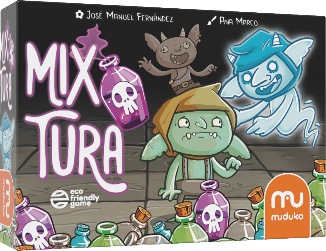 "Życie goblina nie jest łatwe. Nie dosyć, że z niskim wzrostem i niewyględną facjatą trudno o pracę, to jeszcze trzeba dochować wierności wiedźmie, która słynie z produkcji rozmaitych, magicznych eliksirów. Problem w tym, że nie wszystkie z nich są bezpieczne, dlatego najpierw należy je przetestować. I tu właśnie do akcji wkraczają gracze, którzy w roli przymusowych ochotników muszą kosztować w ciemno mikstury. Celem gry jest zostanie ostatnim goblinem, który pozostanie przy życiu! Każdy z graczy posiada niedużą pulę kart eliksirów, wśród których kryją się zarówno te bezpieczne jak i trucizna. W swojej turze gracze ciągną kartę i stosują się do jej polecenia. Za każdym razem, gdy komenda mówi o wypiciu mikstury, należy odsłonić kartę z własnej talii. Jeżeli wyciągnie się truciznę następuje zamiana w ducha - chyba, że gracz ma na nią antidotum. Mix Tura ma intuicyjne zasady, dzięki czemu zagracie w nią zarówno w gronie dzieci jak i dorosłych. Choć jest to gra karciana, która testuje głównie szczęście to nie brakuje w niej wyzwań na spostrzegawczość i lekkiej, negatywnej interakcji. Idealna pozycja na imprezę - nawet do 10 graczy! Autor: Jose Manuel Fernandez Ilustracje: Ana Marco Główne atuty Gra o walorach biobójczych wykonana z materiałów ekologicznych Bardzo intuicyjne zasady: dobierz kartę i wykonaj opisane na niej polecenie Gra zaprojektowana tak, że bawi zarówno dzieci, młodzież, jak i dorosłych Hiszpańska rodzinna gra roku 2020 " Wiek graczy: 8+ Liczba graczy: 4-10 Czas rozgrywki: 15 minut