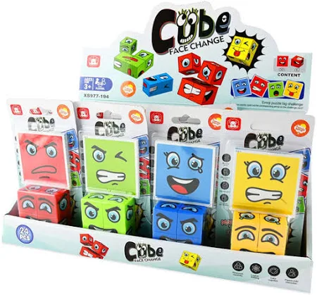 W zestawie znajduje się 12 kart oraz 4 klocki z narysowanymi elemenetami twarzy