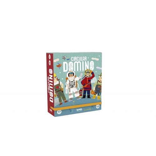 Domino i układanka w jednym. Przy kłopotach z liczeniem kropek, całość można ułożyć dzięki połączeniu postaci - zawodów. 28 szt elementów w zestawie. Klasyczne zasady, przy czym ułożenie domina dla najmłodszych dzieci ułatwiają rysunki przedstawiające zawody. Całość jest układana w koło o średnicy 56 cm. Celem gry jest zakończenie bez pozostawienia żadnego elementu jak w tradycyjnych domino. Duże elementy są łatwe do uchwycenia. Zabawa uczy spostrzegawczości, wspomaga koncentrację, wprowadza dziecko w naukę liczenia.