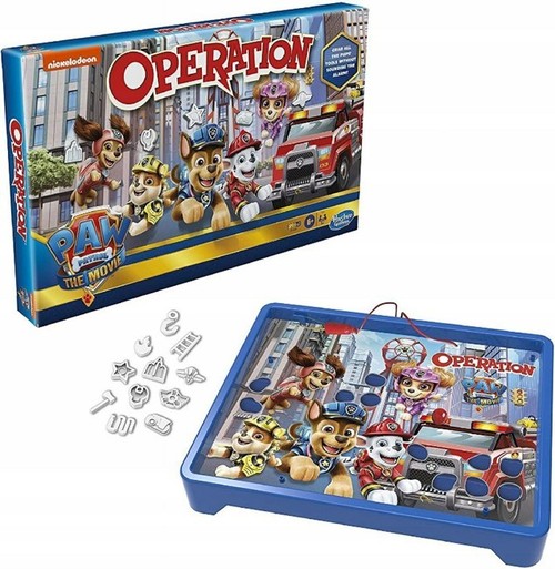 Pomóż psiakom przyjechać z pomocą! Psi Patrol przyjeżdża z pomocą! Czy chcesz im pomóc, chwytając wszystkie narzędzia, których potrzebują, takie jak topór strażacki, drabina i odznaki psiaków, nie uruchamiając brzęczyka? Biegnij z pomocą, ale uważaj na brzęczyk! Zawartość: plansza pęseta 11 plastikowych narzędzi tacka instrukcja Wiek 6+