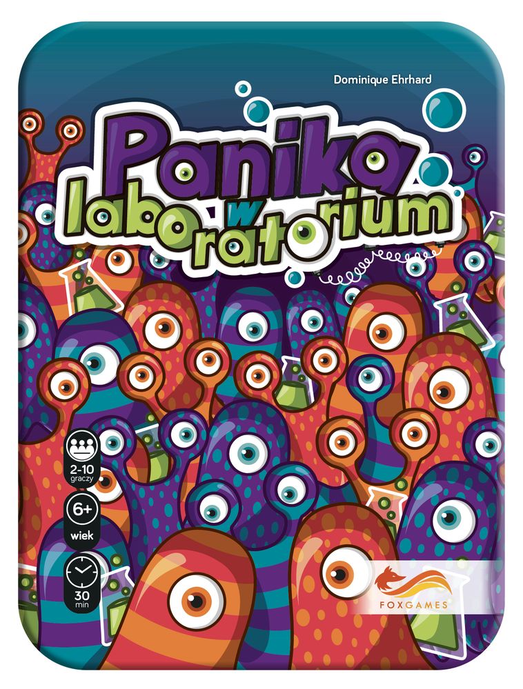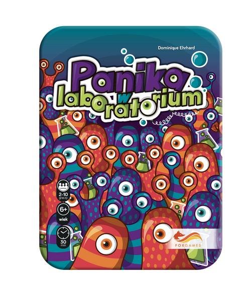 Pomocy! Ameby uciekły z laboratorium! Musicie pomóc je wyłapać, ale nie będzie to takie proste. Te małe stworzonka zmieniają kolory, kształty i wzory, a do tego uwielbiają chować się w wentylacji. Panika w laboratoriumto rewelacyjna gra, którą pokochały miliony osób na całym świecie! JAK GRAĆ? 1. Na środku stołu ułożone są żetony reprezentujące ameby, laboratoria i wentylację. 2. Wynik rzutu kostkami określa kierunek ucieczki ameby oraz jej wygląd. 3. Kto pierwszy odnajdzie właściwą amebę – zdobywa punkt!