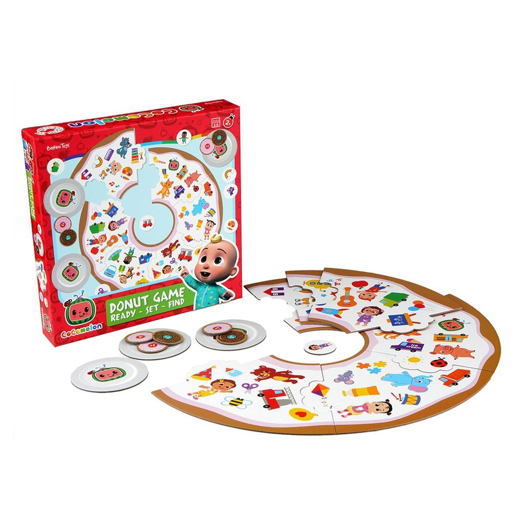 Puzzle, Gra Planszowa, Cocomelon, Pączki, 64 el. Fantastyczna gra planszowa dla 2-6 osób. Polega na odnajdowaniu pączków / żetonów tekturowych/ ze znanymi postaciami i przedmiotami z bajki Cocomelon, umieszczaniu ich na talerzyku, a następnie na planszy. Zwycięzcą jest gracz, który dokona tego jako pierwszy. Gra rodzinna, rozwijająca spostrzegawczość, pamięć, koordynację ruchową, pracę zespołową oraz zacieśniająca więzi rodzinne. Puzzle dla najmłodszych i starszych - 64 el. Gra dla 2-6 osób. Zawiera: duży okrąg z zabawnymi rysunkami, złożony z 6 dużych puzzli. 25 pączków z czekoladową polewą / żetony tekturowe/. 25 pączków z lukrem /żetony tekturowe/. 6 talerzyków na których umieszczamy pączki. Woreczek do przechowywania pączków. Instrukcja w j. angielskim. Pączki przydzielamy losowo w ilości zależnej od ilości graczy. Wymiary puzzli: 20 cm x 14 cm x 0.02 cm. Wymiary talerzyka: 8 cm x 8 cm x 0.02 cm. Wymiary pączków: 3,5 cm x 3,5 cm x 0.02 cm. Wymiary opakowania: 24 cm x 24 cm x 4,5 cm. Kategoria wiekowa: 2+. Produkty Barbo Toys są projektowane w Danii, ze szczególną dbałością o zrównoważony rozwój i wysokiej jakości materiały. Zabawki są wytwarzane zgodnie z filozofią "nauka przez zabawę" i aktywnie wspierają i stymulują zarówno wyobraźnię jak i edukację dziecka, przy tym charakteryzują się doskonałym skandynawskim wzornictwem.