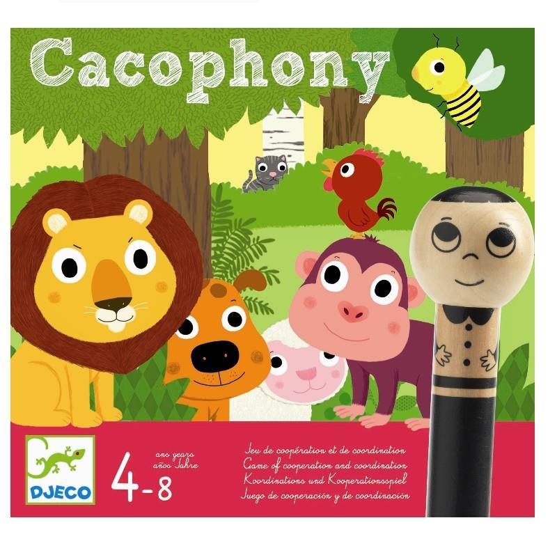 Wiek:od 4 do 8lat; Ilość graczy:2-5; Cel gry:Przy pomocy pozostałych graczy, gracz z zasłoniętymi oczami musi sprowadzić z drzewa swojego kota i wprowadzić go do domu.Przygotowanie gry:oPlanszę kładziemy na środku stołu.oPnie drzew kładziemy na wyznaczonych miejscachoLiściaste karty i karty zwierząt mieszamy i kładziemy odwróconą stroną z boku planszy.Przebieg gry:Zaczyna najmłodszy gracz. Bierze 4 pierwsze karty ze stosiku kart zwierząt i kładzie je losowoprzy każdym boku planszy.Obserwuje bardzo dokładnie ich ułożenie następnie zakrywa opaską oczy. (przy każdej nowej kolejce, tę rolę będzie odgrywał inny gracz).Pozostali gracze potajemnie wybierają odgłosy 4 zwierząt, które są ułożone przy 4 bokach planszy.oPrzy 2 graczach: drugi gracz będzie imitował odgłosy 4 zwierząt wybranych losowo.oPrzy 3 graczach: pozostali dwaj gracze będą imitować odgłosy 2 zwierząt każdy.oPrzy 4 graczach: 2 graczy będzie imitować 1 odgłos, a 3-ci gracz będzie imitować 2 głosy.oPrzy 5 graczach: każdy z 4 graczy będzie imitować jeden głos.Następnie gracze kładą kartę ,,dom"" na miejscu,które wybiorą razem, ale którego nie będzie widział gracz z zasłoniętymi oczami.Potem kładą liściaste karty na pieńkach, zaczynając od miejsca nr 1 i kończąc na miejscu nr 12. Na jednej z tych kart widnieje kotek: to tę kartę gracz musi strącić by odzyskać kotka.W końcu stawiamy pałeczkę z postacią na środku planszy (na miejscu do tego przewidzianym) i nakierowujemy rękę gracza z zasłoniętymi oczami, żeby ją złapał.Gracz z zasłoniętymi oczami przesuwa postać na planszy w kierunku jakim sugerują krzykiempozostali gracze.Te okrzyki odpowiadają odgłosom zwierząt jakie są na kartach ułożonych na bokach planszy.Np. karta kaczka jest po prawej stronie postaci, gracz o zasłoniętych oczach będzie musiał kierować się w prawo, gdy usłyszy odgłoskaczki.