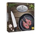 Comber jagnięcy, stek z tuńczyka czy homar w sosie ziołowym? A do tego szczypta szafranu, trufli czy wanilii? – w naszej kuchni oferujemy wyłącznie najlepsze dania i niezapomniane smaki… Chef TiKej TOP Kitchen to familijno-ekonomiczna gra planszowa dla od 2 do 4 osób w wieku od 10 lat, która przeniesie Cię w świat profesjonalnej gastronomii. Wciel się w szefa kuchni – zarządzaj menu eleganckiej restauracji, kupuj najlepsze składniki i sprzęty kuchenne. Gotuj wykwintne potrawy i serwuj je z aromatycznymi przyprawami. Zdobądź najwięcej punktów prestiżu i wygraj! To jedyna w swoim rodzaju gra, która w kompleksowy sposób podchodzi do tematu profesjonalnej kuchni. Dzięki niej możesz poczuć się jak prawdziwy mistrz noża i patelni, czy uczestnik kulinarnych programów telewizyjnych. Rozgrywka toczy się na pięknie ilustrowanych planszach, a gracze używają różnego rodzaju kart oraz rzucają kolorowymi kośćmi reprezentującymi składniki kulinarne na specjalnej patelni… Gra, dzięki przystępnym zasadom i emocjonującej rozgrywce, dostarczy inteligentną zabawę dla całych rodzin na długie godziny. Specyfikacja gry: Ilość graczy: 2-4 Czas gry: 45-70 minut Wiek graczy: 10+ Zawartość pudełka: -1 plansza Marketu; -4 plansze graczy; -Patelnia; -4 podstawki na karty; -90 kości k6; -54 żetony monet; -8 znaczników graczy; -znacznik rundy; -76 kart akcji; -64 kart menu; -16 kart przypraw; -Instrukcja.