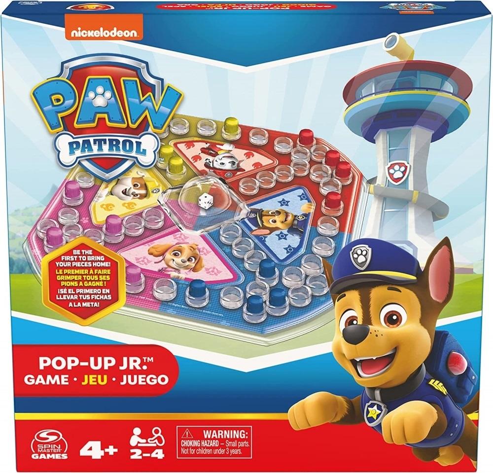 Zagraj w nową grę opartą na megapopularnym serialu Nickelodeon, Psi Patrol Pop-Up od Spin Master Games! Gra przeznaczona dla dzieci w wieku od 4 do 8 lat wyrzuć oczka, naciskając na kopułkę, i graj, by sięgnąć po zwycięstwo! Bądź pierwszym graczem, który przesunie wszystkie swoje 4 pionki prosto do mety. Jednak zachowaj ostrożność, bo ktoś może strącić Twój pionek z planszy! Prosta gra planszowa dla 2-4 graczy w wieku od 4 lat. Postaraj się, aby wszystkie Twoje pionki dotarły do mety. Pierwszy gracz, który to osiągnie, zwycięży w tej prostej grze, idealnej na rodzinne wieczorki z grami! W tej grze dla dziewczynek i chłopców występują wszystkie ulubione szczeniaki Twoich dzieci, w tym Chase, Marshall, Skye i Rubble. Jeśli Twoje dzieci wciąż nie mają dość zabawek z bajki Psi Patrol, koniecznie wypróbuj tę grę! Niezależnie od tego, czy szukasz zabawek dla 6-letniej dziewczynki, czy dla 5-letniego chłopca, ta zabawna gra Pop-Up sprawdzi się jako idealny prezent na urodziny lub święta. Ta planszowa gra dla dzieci w wieku od 4 do 6 lat przeznaczona jest dla przedszkolaków, ale ucieszy wszystkie dzieci powyżej 4 roku życia, które uwielbiają oglądać bajkę na Nickelodeon. Włącz odcinek Psiego Patrolu, wyjmij swoją grę i urządź sobie ekscytującą noc rodzinnej zabawy!