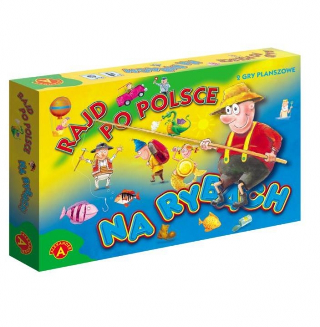 Rajd po Polsce"" i ""Na rybach"" to dwie proste gry losowe, w których o zwycięstwie decydują szczęśliwe rzuty kostką. W ""Rajdzie po Polsce"" gracze przy okazji poznają kształt granicy państwa i położenie ważniejszych miast. Obie gry to znakomita rozrywka dla najmłodszych graczy. Gra dla 2-4 graczy w wieku od 4 lat.