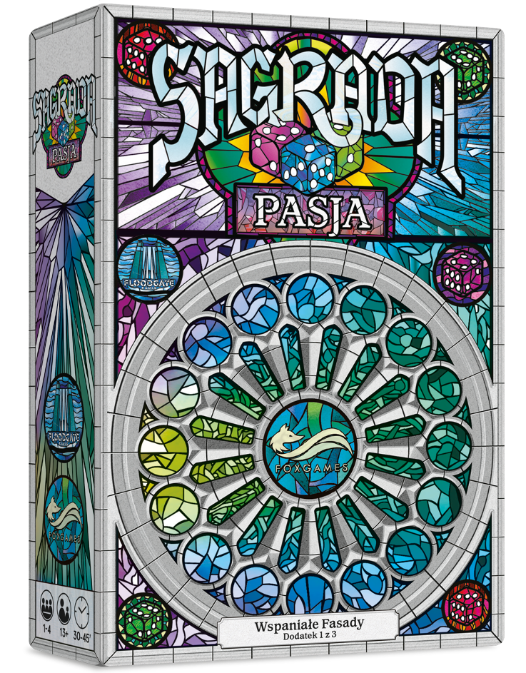 Sagrada Familia w Barcelonie jest wciąż w budowie, tworząc żyjące, budzące zachwyt dzieło ludzkiego geniuszu. Tak jak kolejne nawy dodają bazylice splendoru, tak kolejne dodatki zachwycają graczy swoją głębią i nowatorstwem. Sagrada: Pasja to: dodatkowe wspólne cele nowy kolor kostek jeszcze więcej możliwości! Zawartość pudełka: 6 plansz rzadkich szkiełek 6 kości rzadkich szkiełek 6 jawnych celów 7 tajnych celów 6 kart inspiracji instrukcja Uwaga! To nie jest samodzielna gra! Do rozgrywki wymagana jest podstawowa wersja gry: Sagrada (edycja polska).