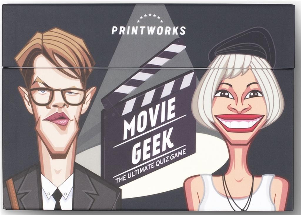 Filmowa gra skojarzeń Movie Geek wydana przez PRINTWORKS. Myślisz, że widziałeś wiele filmów? Zapraszamy do zabawy! Zasady są proste: Musisz odgadnąć nazwisko aktora oraz jeden tytuł filmu, w którym gra. Gra jest pięknie wydana ze świetnymi karykaturami znanych aktorów. Kiedy nie grasz, połóż ją ze gdzieś na wierzchu. Będzie świetnie wyglądać! Pudełko zawiera 50 dwustronnych kart do gry oraz książeczkę z wynikami. The Trivia Game of Movie Geek – ze znanymi aktorami i filmami. Świetny pomysł na prezent dla kinomaniaka. PRINTWORKS to szwedzka , której ambicją jest tworzenie funkcjonalnych produktów codziennego użytku w nowym estetycznym wydaniu. Produkty PRINTWORKS to indywidualizm, jakość i najwyższej klasy wzornictwo. Przemyślany dobór kolorów, materiałów i typografii sprawia, że produkty PRINTWORKS to klasyka naszych czasów.