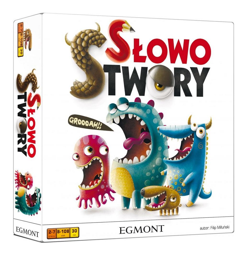 Gra SłowoStwory to typowa ""party game"" (lub ""gra imprezowa"" jeśli wolicie polskie określenie :)). Polega ona na wymyślaniu na czas (!) słów pasujących do kategorii wskazanej przez kostkę oraz zawierających litery widoczne na kartach. Należy wymyśleć np. słowo z kategorii ,,muzyka"" zawierające litery R i N. Na wymyślenie poprawnej odpowiedzi gracze mają 30 sekund! Niektórym może to trochę przypominać znaną przed laty zabawę w ""państwa-miasta"". Gra jest jednak nieco bardziej rozbudowana.W grze pojawiają się tytułowe stwory pożerające zdobywane przez graczy karty, dostarczając w zamian punkty.Jak przystało na grę imprezową, gra posiada proste zasady zapewniające mnóstwo emocji i zabawy.Gra zawiera 2 warianty: łatwiejszy (dla graczy w wieku 8+) i trudniejszy (dla graczy w wieku 12+).