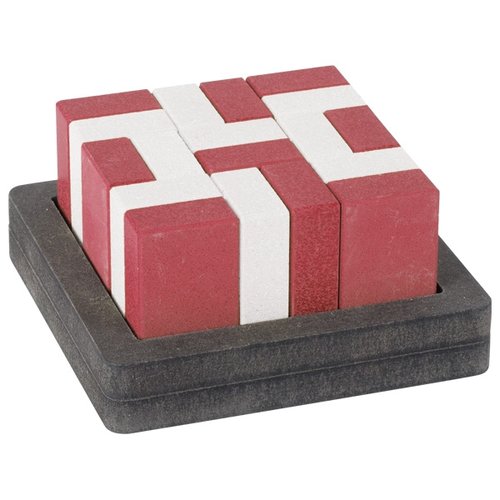 Aż trudno uwierzyć, że tak mała plansza oferuje tak wiele wariantów gry! Nie sposób zliczyć wszystkie możliwe do wykonania posunięcia.Łamigłówka przeznaczona dla dzieci od 6 lat. Gra strategiczna dla 2 osób składa się 1 drewnianej planszy, 18 klocków do gry, wykonanych z oryginalnego kamienia Anker (9 czerwonych, 9 białych).