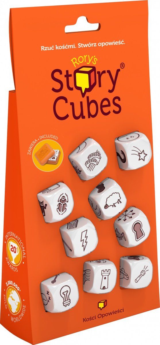Oto prosta w założeniach i jednocześnie genialna gra, która dostarczy wam masę radości, stanowiąc przy tym doskonały trening pomysłowości i wyobraźni. Story Cubes to dziewięć ładnie wykonanych, sześciennych kostek, z których każda zawiera na ściankach odmienny zestaw ilustracji.
