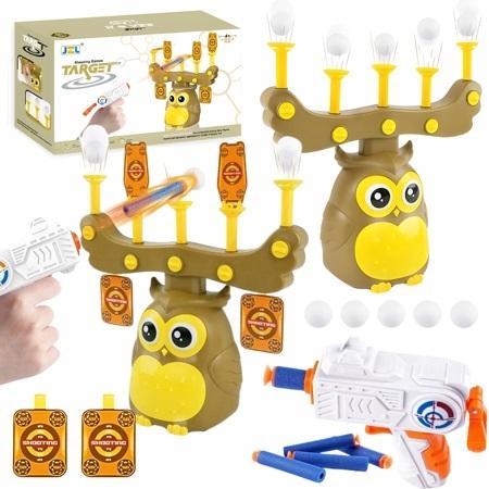 Zabawka w kształcie uroczej sówki, posiada możliwość umieszczenia na niej 7 kart celów, które można postawić lub powiesić. Pozwala to na różnorodność zabawy, dzięki czemu można wymyśleć własne zasady gry. Dodatkowo, można uruchomić przepływ powietrza, który będzie unosić piłeczki, co dodaje atrakcyjności grze i zapewnia świetną zabawę. Przepływ powietrza można regulować, co pozwala na dostosowanie poziomu wyzwania do wieku i umiejętności.