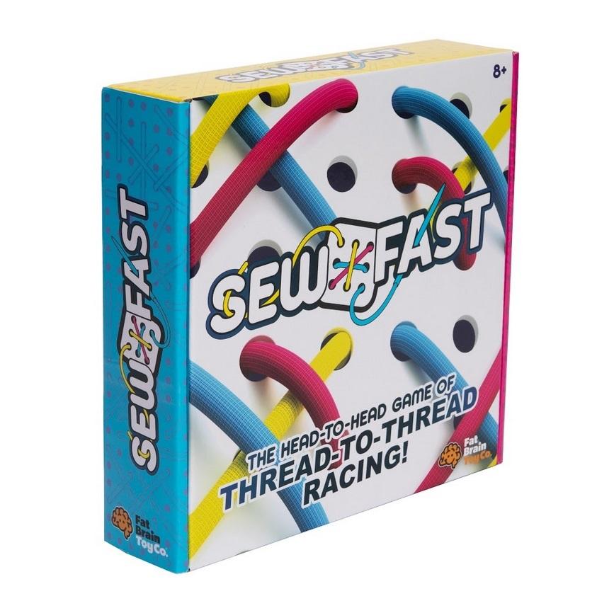 Gra Szyj Szybko. Gotowi, do biegu, szyj! Każdy gracz otrzymuje planszę do szycia i trzy sznurki w trzech kolorach, następnie odwraca jedną z kart wyzwań... gotowi, do biegu, szyj! Przewlekając sznurki tak szybko, jak to możliwe, gracze ścigają się, aby wyszyć wzór z karty. Gracz, który pierwszy ukończy, wygrywa! Zestaw zawiera dwie plansze, sześć sznurków w trzech kolorach oraz 40 kart z wyzwaniami o czterech poziomach trudności. Rekomendowany wiek 8 lat +. Gra powstała według pomysłu Tristana, zwycięzcy konkursu Kidventor 2020, organizowanego corocznie przez Fat Brain Toy Co. Gra Szyj Szybko: Wyścigi na wyszywanie. Rozwija umiejętności motoryczne. Rozwija koordynację ręka-oko, rozumowanie przestrzenne. Zachęca do rozwiązywania problemów. Odwróć kartę ze wzorem, aby rozpocząć wyścig. Gracze ścigają się, aby nawlec kolorowe sznurki na swoją planszę, odwzorowując wzór na karcie. Zawiera 40 kart wyzwań na 4 poziomach trudności Gra we dwoje lub solo - sprawdź, czy możesz pokonać swój czas! Zestaw zawiera 2 żółte sznurki, 2 różowe sznurki, 2 niebieskie sznurki, 2 plansze do nawlekania, 40 kart wyzwań. Na podstawie projektu Tristana, zwycięzcy konkursu Kidventor 2020. Przeznaczona dla dzieci 8 lat +.