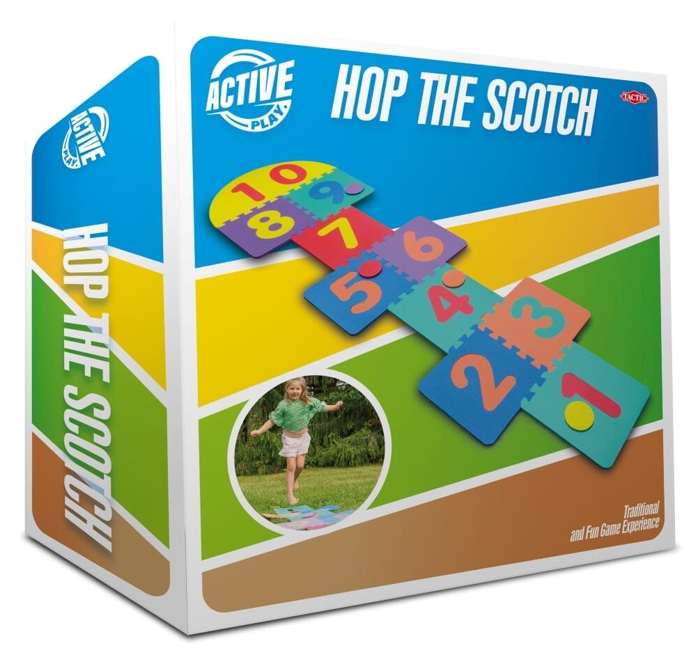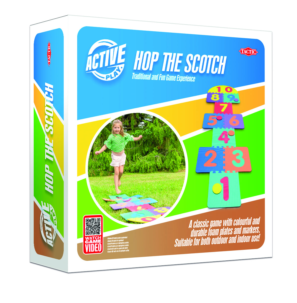 Klasyczna gra dla dzieci. Rzuć znacznikiem na pole i przeskocz przez pola, aby je odzyskać. Kolorowe piankowe płytki i markery. Idealny zarówno do wnętrz, jak i na zewnątrz. Zawartość: 10 płytek piankowych, 4 markery.