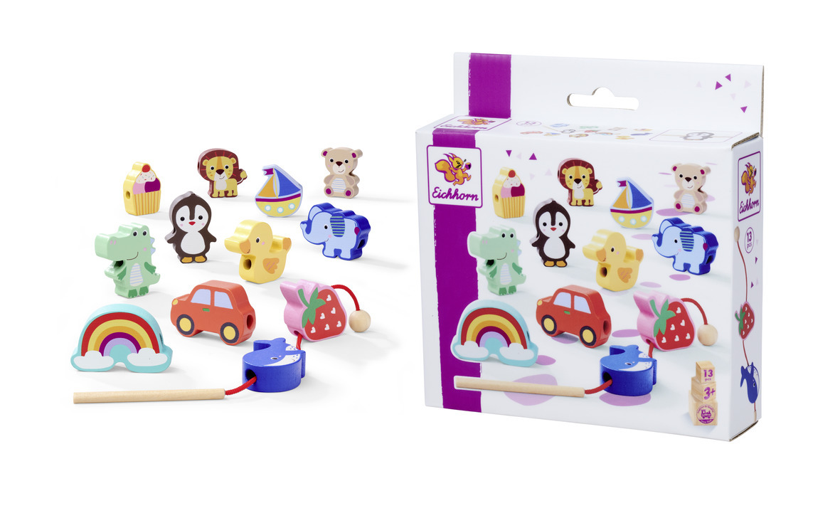Z grą Eichhorn Threading Game dzieci w wieku od 3 lat odkrywają świat w zabawny sposób! Ten czarujący zestaw 13 starannie wykonanych drewnianych figurek zaprasza do zabawy w nawlekanie. Niezależnie od tego, czy to tęcza, truskawka, czy lew – kolorowe i przyjazne dzieciom...