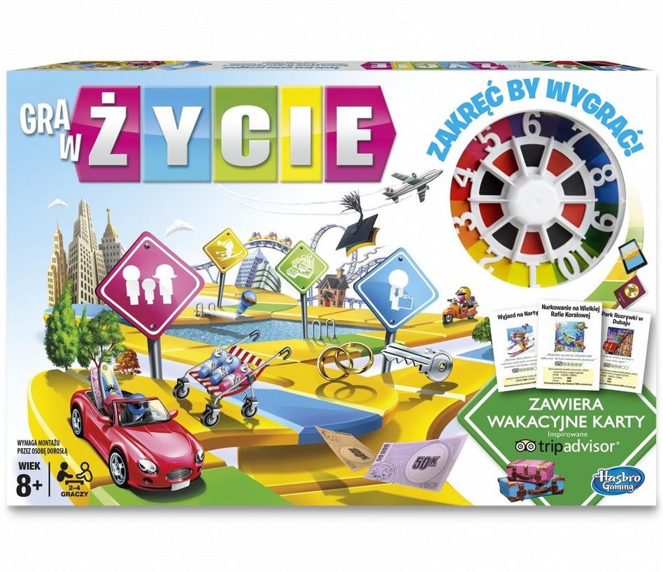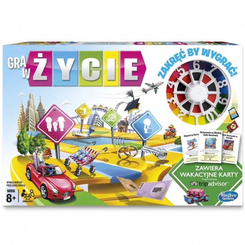 Masz tysiące możliwości! Jak przeżyjesz swoje życie? Wybierz drogę pełną atrakcji, przygód i niespodziewanych zwrotów akcji! Wybór należy do Ciebie. Zawartość: plansza do gry z Kołem Fortuny 100 kart 5 żetonów 4 auta 24 kołki zestaw banknotów instrukcja Liczba graczy 2-4 Wiek 8+