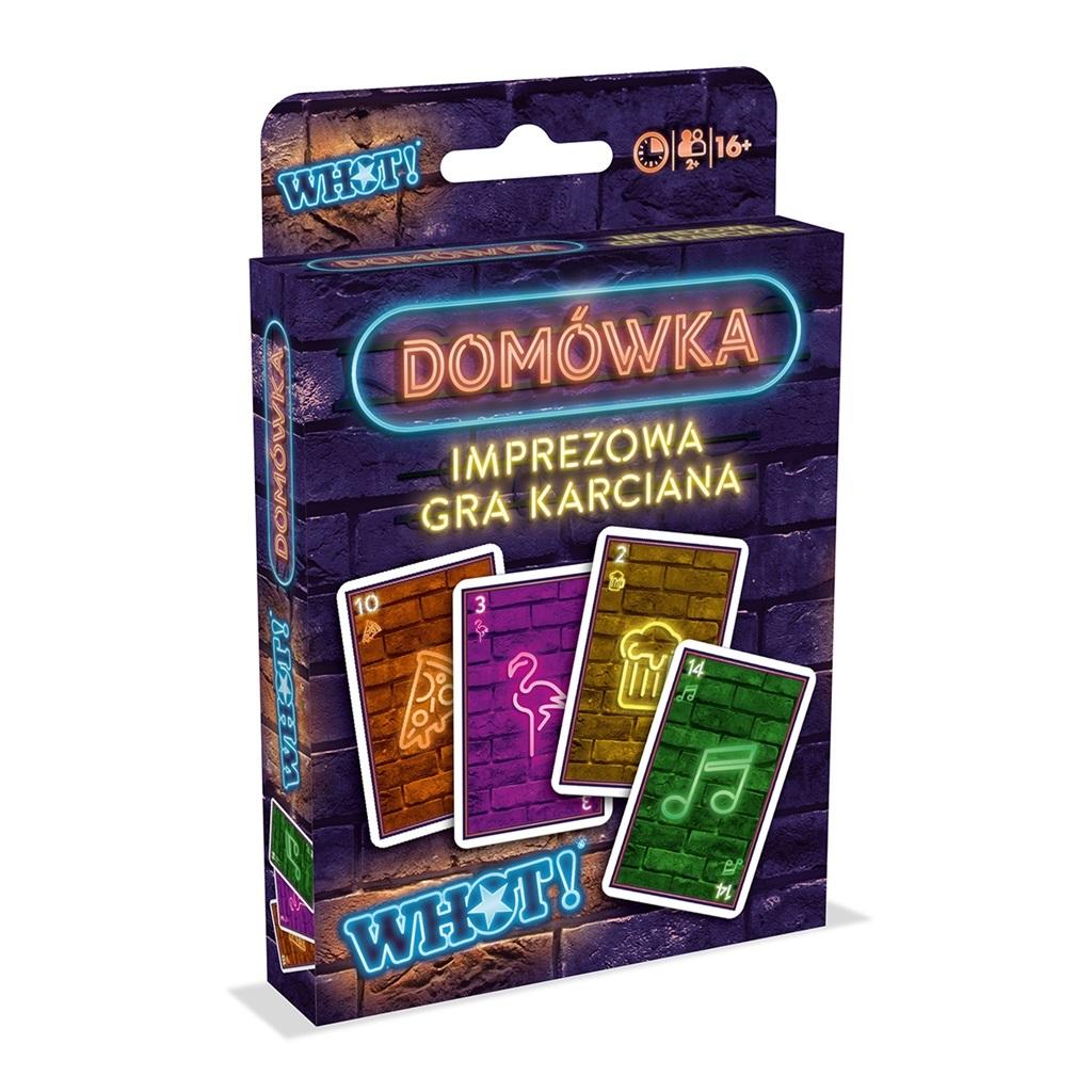 WHOT! Domówka Gra karciana, którą pokochają wszyscy imprezowicze? Say WHOT?! Wybierz karty WHOT! Domówka, aby rozkręcić każdą imprezę. Dzięki intuicyjnym zasadom gry, żadne ilości... ekhm… herbaty, nie wpłyną na jakość rozgrywki. Talię kart dzięki niewielkim rozmiarom zmieścisz w każdej torebce, a nawet w dużej kieszeni. Imprezowy klimat Domówki Piwko, drink, a może pizza? Karty WHOT! Domówka zostały zaprojektowane na imprezy! Neonowy design piktogramów nawiązuje do gier towarzyskich z linii Domówka. Zamiast klasycznych dam i królów w talii znajdziesz motywy nawiązujące do klimatycznych imprez pubowych. Pozbądź się wszystkich kart i wygrywaj w najlepszym stylu! Jak grać w WHOT! Domówka? Celem gry jest pozbycie się wszystkich kart, dopasowując od siebie symbole lub numery. Przed rozpoczęciem gry potasuj talię i rozdaj każdemu graczowi po 6 kart. Z pozostałych utwórz zakryty stos dobierania. Odsłoń pierwszą kartę ze stosu i połóż na środku. Od teraz to stos dopasowania. Pierwszy z graczy musi dołożyć do stosu dopasowania kartę z takim samym symbolem lub numerem. Wyjątkiem jest karta WHOT!, która zastępuje dowolny symbol lub numer. Jeśli gracz nie może dopasować żadnej z kart, pobiera nową kartę ze stosu dobierania. Wygrywa osoba, która jako pierwsza pozbędzie się wszystkich kart. Wydłużony Nokaut Klasyczna rozgrywka to za mało? Wypróbuj nokaut - wariant gry, w którym sumuje się punkty. Gdy pierwszy z graczy pozbędzie się kart, pozostałe osoby sumują liczby na swoich kartach. Wynik należy zapisać w dołączonym notesie. Gracze z ilością punktów 100 lub więcej wypadają z dalszej gry! Wygrywa gracz, który najdłużej utrzyma się w rozgrywce. Szybkie schodki Jeszcze szybsza rozgrywka? Graj w WHOT! Domówka według wariantu schodki! Graj według zasad podobnych do klasycznej rozgrywki z uwzględnieniem łączenia kart. Karty z następującymi po sobie numerami możesz wyłożyć podczas jednej kolejki. Pamiętaj, że dolna karta musi pasować do stosu numerem lub symbolem, a następujące po niej numery muszą być coraz większe lub coraz mniejsze. Nie można powtarzać numerów oraz zmieniać kolejności kart w ciągu. Podwajamy! Im więcej drinków, tym lepiej? Nic bardziej mylnego! W ostatnim z wariantów rozgrywki pozbądź się kart z piktogramem drinka jak najszybciej! Podwajają one sumę punktów pozostałych kart, które podobnie jak w wariancie nokaut, podlegają zsumowaniu. Wystarczy 100 punktów, żeby zakończyć Twoja rozgrywkę! Głodny roz(g)rywki? Skompletuj całą serię gier Domówka, która będzie Twoją tajną bronią na spotkaniach towarzyskich! TOP TRUMPS QUIZ Domówka to kompaktowa gra quizowa z odjechanymi, popkulturowymi pytaniami, Trivial Pursuit sprawdzi Twoją wiedzę w kategoriach: Muzyka, Podróże, Lifestyle, Kuchnie Świata, Filmy i Seriale oraz Kim jestem?, Domówka Ultimate?! Wypróbuj pojedynek na planszy - Trivial Pursuit Domówka Ultimate. Zawartość pudełka 53 karty z symbolami Instrukcja Notes z punktacją Specyfikacja Liczba graczy: 2 i więcej Wiek graczy: 16+ Czas gry: 15 min Język wydania: polski Uwaga! Produkt nieodpowiedni dla dzieci poniżej 3 roku życia.