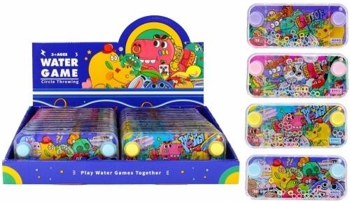 Zalety produktu: zadba o rozwój ruchowo-myślowy, występuje w czterech wersjach kolorystycznych: różowym, fioletowym, żółtym, niebieskim. Gra zręcznościowa polegająca na umieszczeniu wszystkich kolorowych obręczy na dwóch słupkach, posługując się jedynie dwoma przyciskami, które wprawiają obręcze w ruch dyktowany przez znajdującą się w środku wodę. Zawartość zestawu: gra wodna. Wymiary/waga/baterie: wymiary produktu (dł. x wys. x gł.) [cm]: 16x7x2, wymiary opakowania display (dł. x wys. x gł.) [cm]: 34x8x267,waga produktu bez opakowania [kg]: 0,12 kg, waga produktu w opakowaniu display [kg]: 3,24 kg, nie wymaga zasilania bateriami. Zabawka przeznaczona dla dzieci w wieku: 3+
