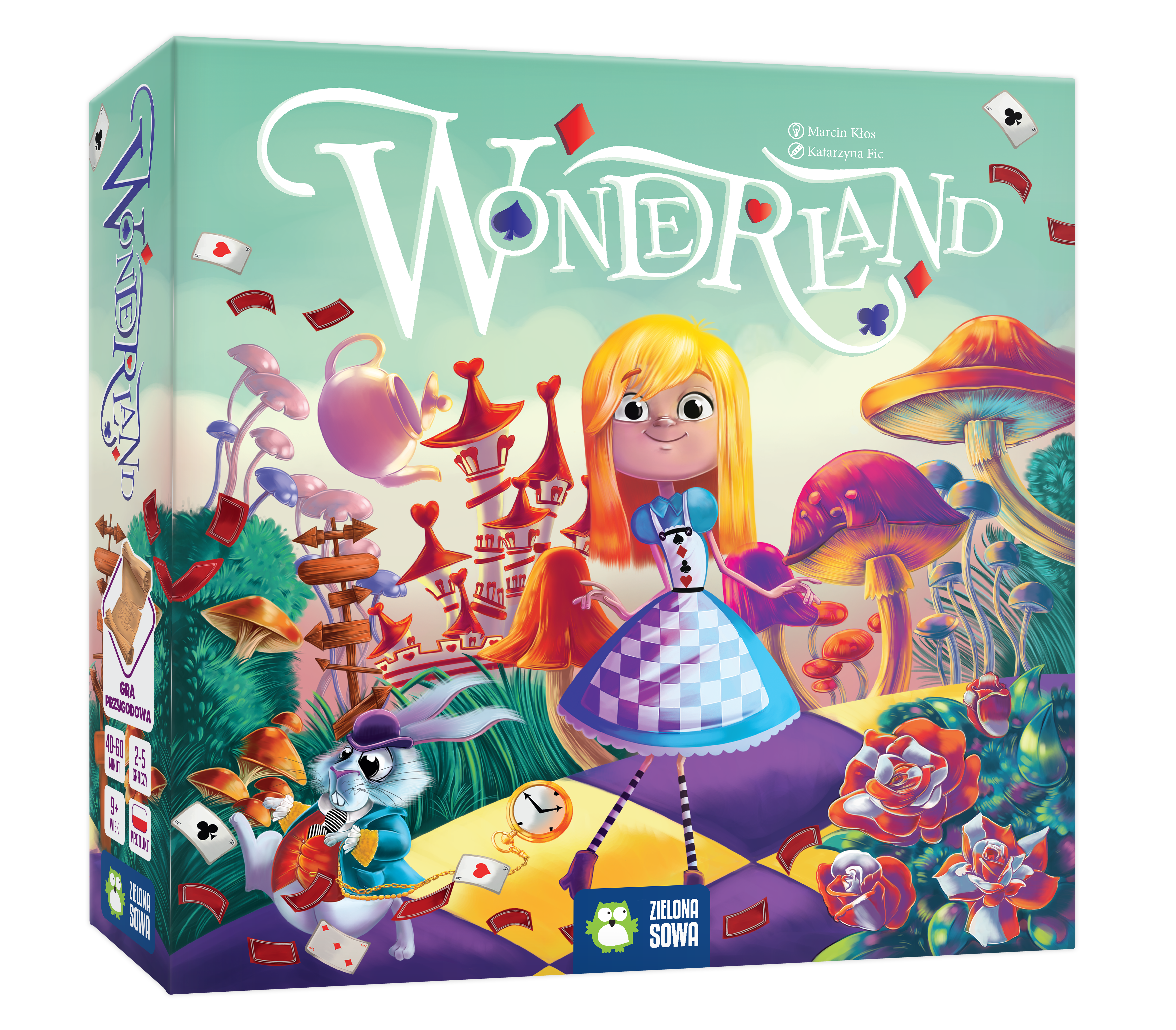 Pogoń za Białym Królikiem i zjedzenie magicznego ciasteczka to nie był dobry pomysł… Wszyscy gracze zamienili się w ptaki Dodo i zostali uwięzieni w Wonderlandzie. Żeby wydostać się z tej magicznej krainy, uczestnicy gry muszą wspólnie: zdobyć zaufanie mieszkańców, odnaleźć Alicję oraz dotrzeć do Sali o Wielu Drzwiach. Każde wykonane zadanie i odnaleziony ślad Alicji zbliża graczy do ucieczki. Trzeba tylko pamiętać, że zegar cały czas tyka, więc warto dobrze zaplanować każdy swój ruch! Zawartość pudełka: 10 kafelków planszy plansza Postępu 6 pionków Ptaków Dodo 9 pionków Bohaterów 6 kart Ptaków Dodo 9 kart Przyjaciół/Przedmiotów 9 kart Misji 1 karta Alicji 23 karty Przedmiotów 12 kart Losu 18 znaczników Śladów 3 znaczniki Postępu 5 znaczników Akcji 5 znaczników Misji kostka