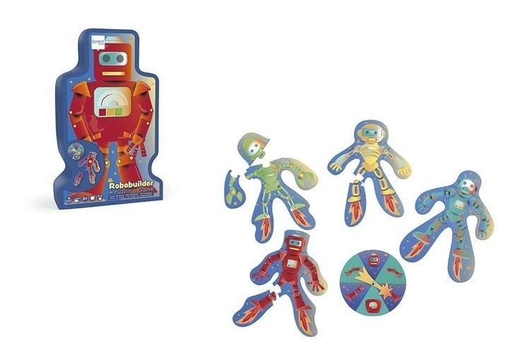 Gra puzzle ze spinnerem Zbuduj Robota to super mix zabawy dla fanów gier i puzzli jednocześnie. Zadaniem graczy jest zbudowanie robota, zgodnie z gwiazdkami na odwrocie puzzla. Puzzli nie wybierasz z puli, musisz dobrze zakręcić spinerem aby trafić element Twojego robota.