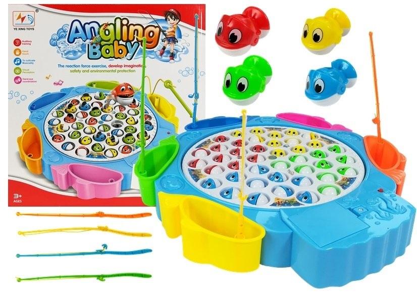 Gra Zręcznościowa Łowienie Rybek 4 Wędki Niebieska Łowienie rybek jest świetną grą dla całej rodziny. Pamiętajcie, tylko by się skupić, ponieważ rybki są sprytne i nie zawsze dadzą się złapać na haczyk. Zręcznościowa gra rodzinna dostarczy mnóstwo uśmiechu i radości, a przy tym poprawi refleks i koncentrację wszystkich zawodników. Jesteśmy pewni, że ta klasyczna gra wywoła wiele emocji, a także nauczy dzieci zasad zdrowej rywalizacji. Zestaw wykonany w kolorze niebieskim. W skład zestawu gry Łowienie rybek wchodzi: - podstawa do gry - 5 pudełeczek w kształcie rybek - 4 sztuki dużych wędek - 4 sztuki małych wędek - 42 sztuki rybek Zasady gry są bardzo proste. By ją rozpocząć, należy umieścić baterie w podstawie do gry, a następnie ułożyć wszystkie rybki w specjalnych otworach na planszy. Wędki w dłoń i gotowe! Kolorowe rybki kręcą się, zamykając i otwierając swe buźki. Zadaniem dwóch zawodników rywalizujących ze sobą jest sprytne wycelowanie i złapanie rybek na wędki. Wygrywa ten z graczy, który złowi większą ilość rybek. Z zabawki może korzystać samo dziecko, jednak gra będzie zdecydowanie weselsza, kiedy dołączy się rodzeństwo lub kolega. Wymiary elementów gry: - podstawa do gry: 33 cm x 31 cm x 4 cm - pudełeczko w kształcie rybek: 13 cm x 5 cm x 4.5 cm - duża wędka: długość rączki - 19 cm, długość nitki - 13 cm - mała wędka: całkowita długość - 22 cm - rybka: długość - 3 cm Wymiary opakowania gry: 33 cm x 33 cm x 4 cm Ze względu na małe elementy znajdujące się w grze, zabawka przeznaczona jest dla dzieci powyżej 3. roku życia. Zabawki posiadają certyfikat CE i są zgodne z normą EN 71. By uruchomić zabawkę, należy użyć trzech sztuk baterii "AA" 1.5 V, które nie są dołączone do zestawu. Zabawka jest prosta w montażu