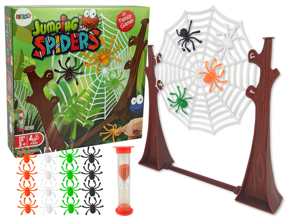 Gra Zręcznościowa Skaczące Pająki Komu szybciej uda się umieścić swoje pająki na czas? Sprawność manualna oraz zręczność na pewno przydadzą się przy tej zabawie. Ta trzymająca w napięciu i emocjonująca rozgrywka zapewni dzieciakom niesamowitą zabawę oraz niezapomniane wspomnienia. W grę mogą grać jednocześnie nawet 4 osoby a jej zasady są bardzo proste Jedne pająki zostają na siatce, a inne spadają. Wygrywa ten, kto najszybciej umieści komplet swoich pająków na drzewie. Czas na trafienie będzie odliczany poprzez dołączona do zestawu klepsydrę. Nie daj się zwieść sprytnym pająkom i umieść je wszystkie w odpowiednie miejsce. Elementy zestawu: - siatka - 16 pająków w różnych kolorach - klepsydra - drzewa - belka Wymiary zabawki: 34 cm x 35 cm Wymiary siatki ok. 25 cm x 25 cm Wymiary opakowania: 27 cm x 27 cm x 7 cm Zabawka przeznaczona jest dla wszystkich dzieci powyżej 3 roku życia.