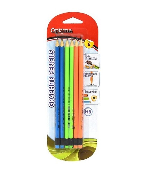 Grafitowe ołówki z gumką HB 6 sztuk na blistrze, 12 pakietów w pudełku.