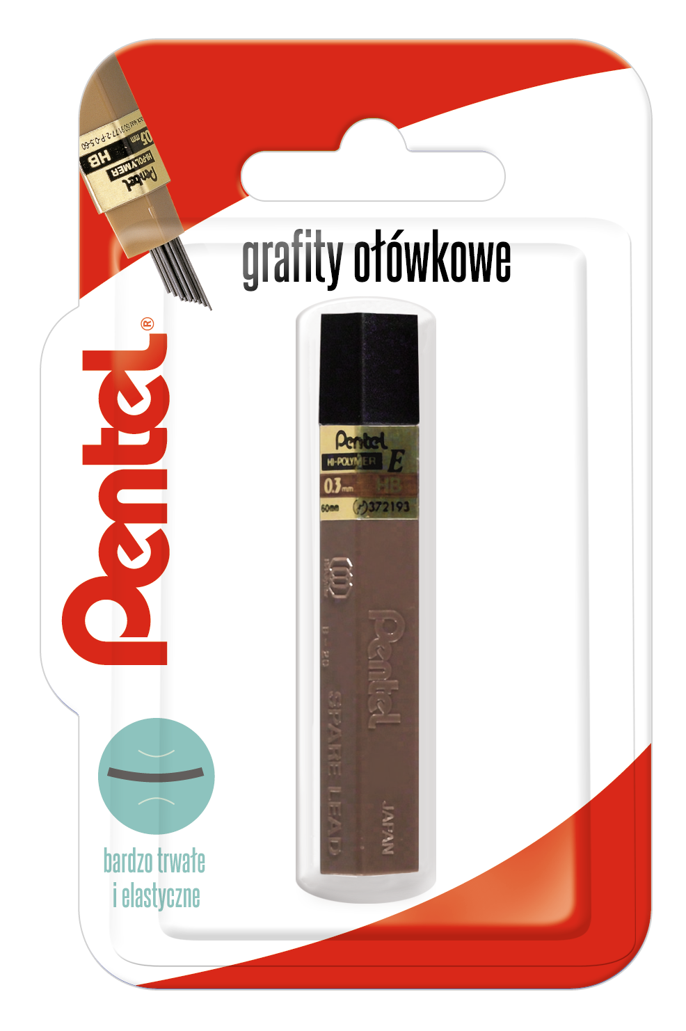 Grafity Hi-Polymer 0,3mm, twardość HB to doskonałe połączenie syntetycznej żywicy, grafitu i węgla, tworząc w ten sposób wyjątkowo trwałe i jednocześnie elastyczne wkłady ołówkowe. Nie zawierają szkodliwych substancji. 12 grafitów w fiolce. Pakowany x 1 sztuka, blister. Dostępne również w twardościach: B, H, 2H i 3H.
