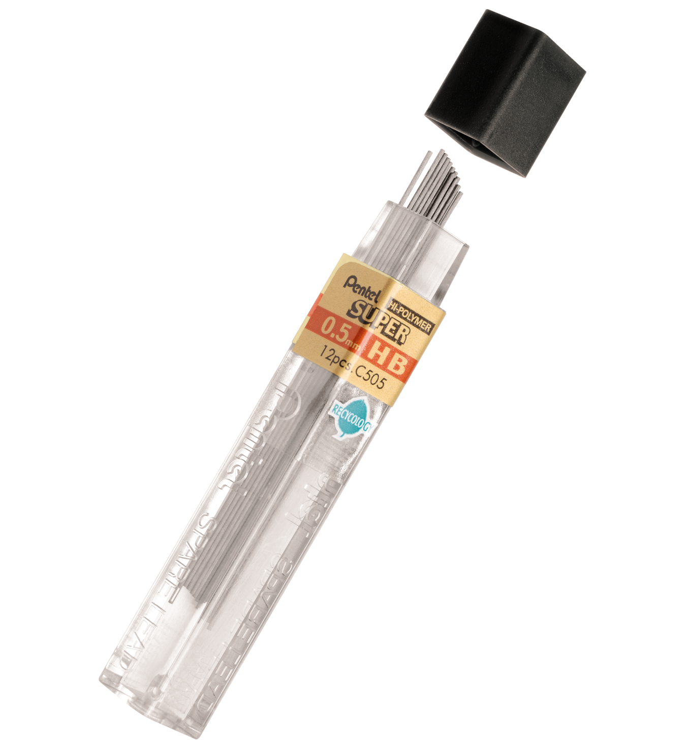 Grafity ołówkowe Hi - Polymer, twardość HB. Wyjątkowo trwałe a zarazem elastyczne, ponieważ powstały z połączenia syntetycznej żywicy, grafitu i węgla. Nie zawierają szkodliwych substancji . 100% recyklingu. Pakowe po 1 sztuki na blistrze. Dostepne twardości: F, H, 2H i 3H.