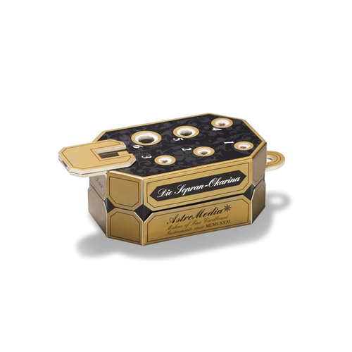 Opis: Okaryna AstroMedia jest nastrojona w C-dur, ma aksamitny dźwięk, zakres dziewięciu tonów. Gra na niej nie jest trudna, a zestaw zawiera arkusz z chwytami dla niektórych piosenek. Czas budowy: 45 minut Zawartość zestawu: 1 arkusz sztancowanego, lakierowanego kartonu z elementami do budowy okaryny. Sztancowanie pozwala na wyjęcie elementów bez wycinania. polskojęzyczna instrukcja
