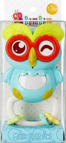 GRAJĄCA SÓWKA - to unikalna grzechotka z opcją wygrywania 12 melodyjek oraz nagrywania własnych kompozycji. Krótkie naciśnięcie brzuszka sówki uruchamia jedną z 12 kołysanek, a dwukrotne naciśnięcie umożliwia nagranie własnych dźwięków.  Przytrzymanie białego przycisku ponad 5 sekund umożliwia skasowanie nagrania. Sówka osadzona jest na obręczy, na której znajdują się kolorowe kółeczka o nieregularnym kształcie. Potrząsanie zabawką wprawia je w ruch, implikując dźwięki uderzania po sobie. Zabawka doskonale sprawdza się w ćwiczeniu umiejętności manualnych dziecka, pobudzania jego wyobraźni oraz wspierania rozwoju zmysłu słuchu, wzroku, dotyku. Wymiary/waga/baterie: wymiary produktu (dł. x wys. x gł.)[cm]: 8x14x5, wymiary opakowania (dł. x wys. x gł.)[cm]: 8x18x5, waga produktu bez opakowania [kg]: 0,10 kg, waga produktu w opakowaniu [kg]: 0,15 kg, wymaga zasilania bateriami 2 x AAALR03- załączono do zestawu. Zabawka przeznaczona dla dzieci w wieku: 12m+. Pakowana w przeźroczyste opakowanie z zawieszką.