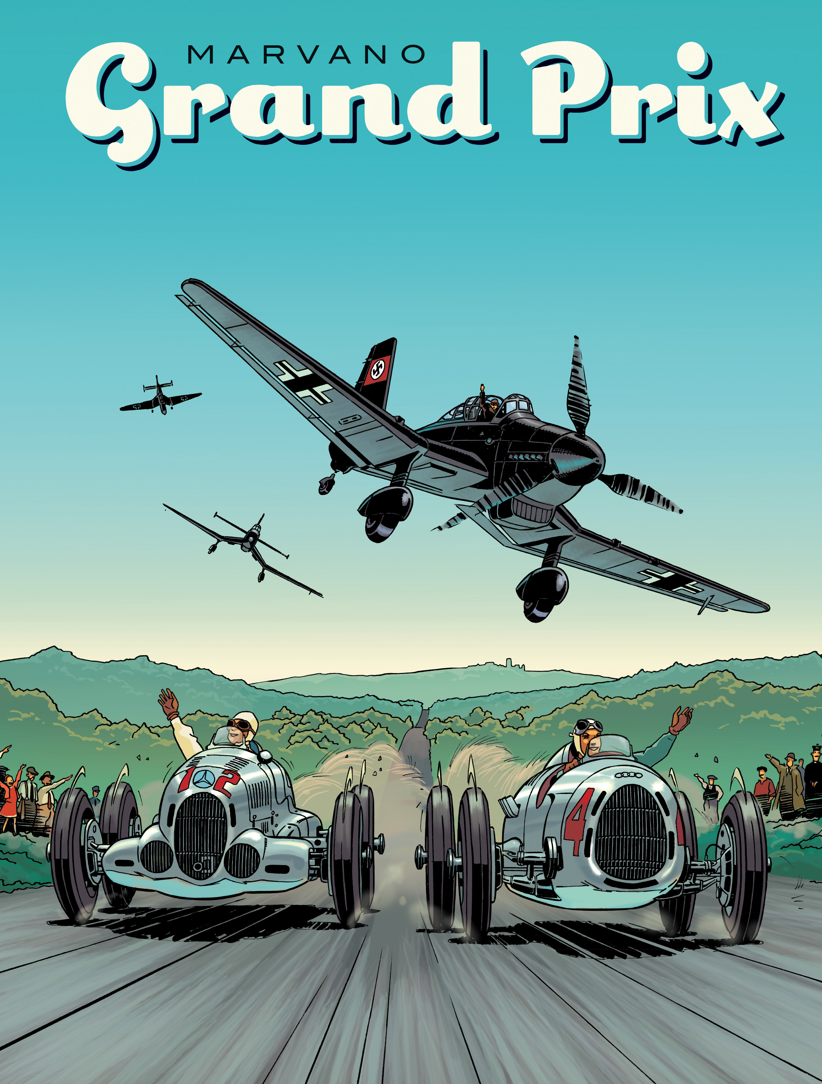 W latach 20. i 30. XX wieku cała Europa żyła wyścigami samochodowymi. Uwielbiano zawody cyklu Grand Prix, rozgrywane na najszybszych bolidach świata rozwijających prędkość do 300 km/h. Kierowcy wyścigowi byli tak sławni jak gwiazdy filmu. Adolf Hitler wspierał niemieckie ekipy rajdowe Mercedesa i Auto Union, aby nazistowska propaganda mogła wykorzystać ich zwycięstwa na chwałę Rzeszy. Grand Prix to rozgrywająca się w czasach międzywojennych epopeja o ikonach ówczesnych tras wyścigowych. Kierowcach, których losy były ściśle związane z mrocznymi planami Hitlera. Marvano, wykorzystując liczne źródła historyczne, stworzył fresk z gatunku fikcji dokumentalnej, niezwykle plastycznie ukazujący rozwój wyścigów samochodowych na tle dziejów hitlerowskich Niemiec i sytuacji politycznej całej ówczesnej Europy. Emocje sportowe, sensacja, wielka polityka, szpiegostwo, śmierć na torze wyścigowym, miłość, strach przed nazistami, prześladowania mniejszości – oto tematy najnowszej opowieści autora. Marvano (Mark Van Oppen) zdobył sławę seriami stworzonymi według książek Joego Haldemana: Wieczna wojna i Wieczna wolność. Samodzielnie napisał i narysował cenione cykle Bonneville, Berlin i Brygada Żydowska.