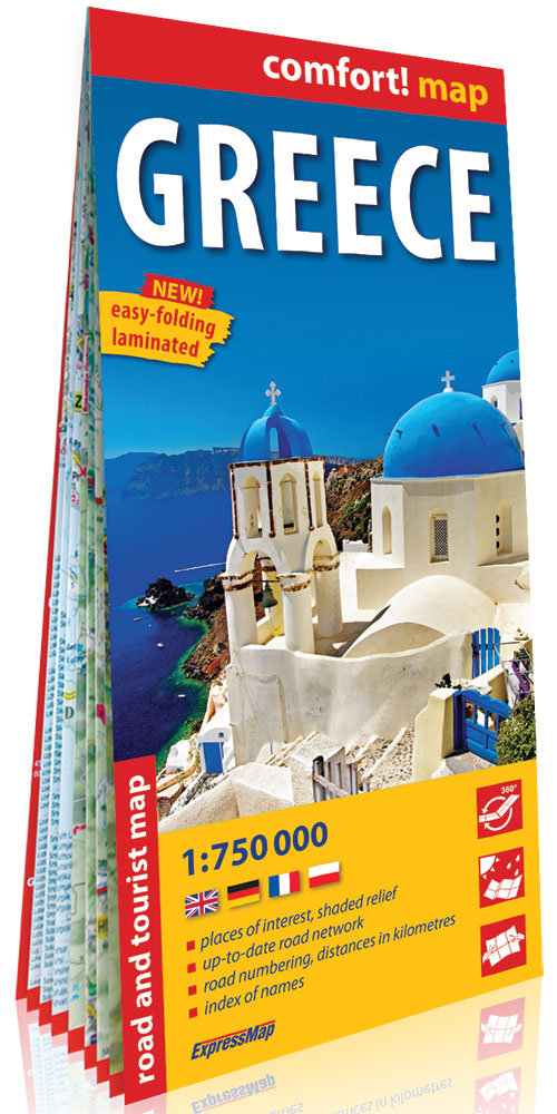 Grecja (Greece) Pełne starożytnych zabytków Ateny, widowiskowe Meteory, białe wioski Santorini, wąwóz Samaria na Krecie, piaszczyste plaże Korfu… Atrakcje Grecji długo można by wymieniać. Z dwustronnie laminowaną, wygodną w składaniu i trwałą mapą samochodowo-turystyczną bez trudu można dotrzeć w każdy zakątek tego śródziemnomorskiego kraju. Na mapie znajdują się: • atrakcje turystyczne, • plastyczna rzeźba terenu, • aktualny stan dróg, • szczegółowa kategoryzacja i numeracja dróg, • odległości drogowe w kilometrach, • skorowidz nazw.