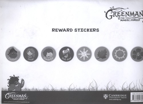Greenman and the Magic Forest is a three level pre-primary English course full of surprising adventures created to help children learn English naturally. This reinforcement tool is essential in helping children to use English as much as possible in the classroom. By pointing out the pupils' success in class the pupils are motivated to continue in their efforts. The reward stickers include pictures of the main characters from the book and positive expressions such as: Well done! Great!